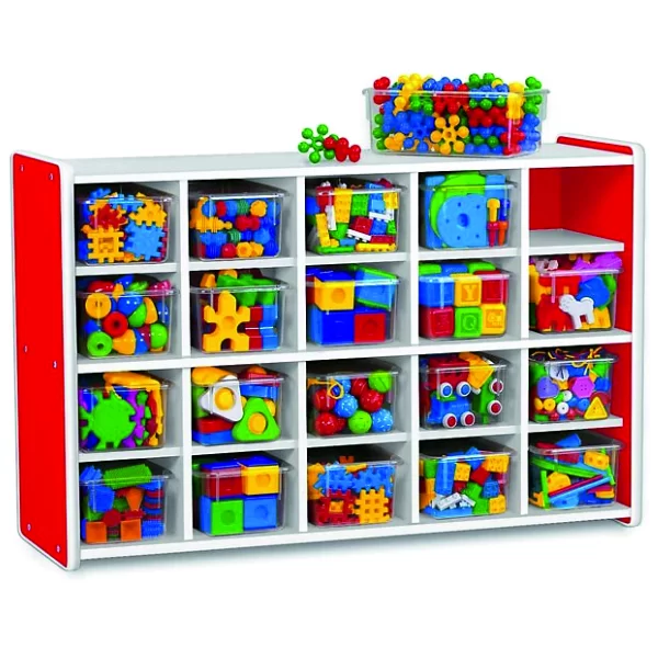 Kreş oyuncak dolabı 20 adet plastik oyuncak saklama kutusu ile birlikte teslim edilir.