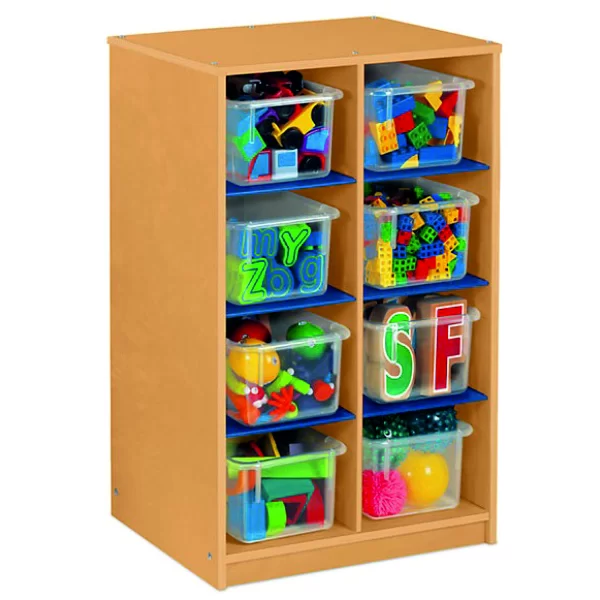 Kreş oyuncak dolabı 8 adet plastik oyuncak saklama kutusu ile birlikte teslim edilir.